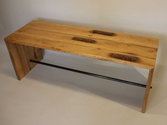Alte Gebäude erzählen eine individuelle und historische Geschichte. Wir von LuxUnica lassen ihren Charakter bei Ihnen zu Hause weiterleben. Bei uns entstehen besondere Möbel, die jedem Raum einen speziellen Charakter verleihen und so einzigartig sind wie ihre Besitzer. Für dieses Produkt verwenden wir deshalb ausschließlich altes Eichenholz oberschwäbischer Bauernhäuser. Die Holzbalken des Fachwerks werden dazu in Bohlen aufgetrennt und weiter verarbeitet. Alte Zapfenlöcher lassen teilweise den ursprünglichen Nutzen der alten Holzbalken erkennen. Durch die Behandlung mit einem natürlichen und ökologischen Wachs kommt die einzigartige Maserung des historischen Holzes perfekt zur Geltung und es ensteht eine Weiche natürliche Haptik.